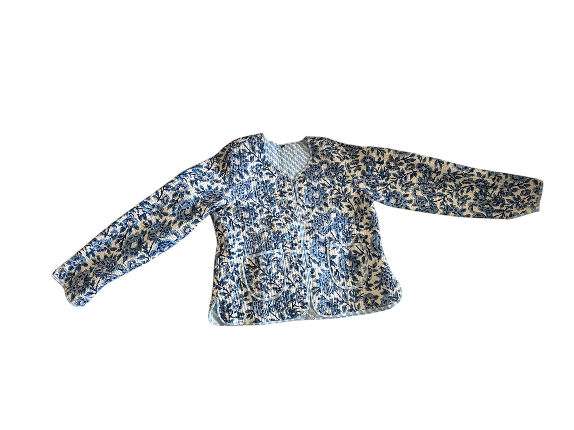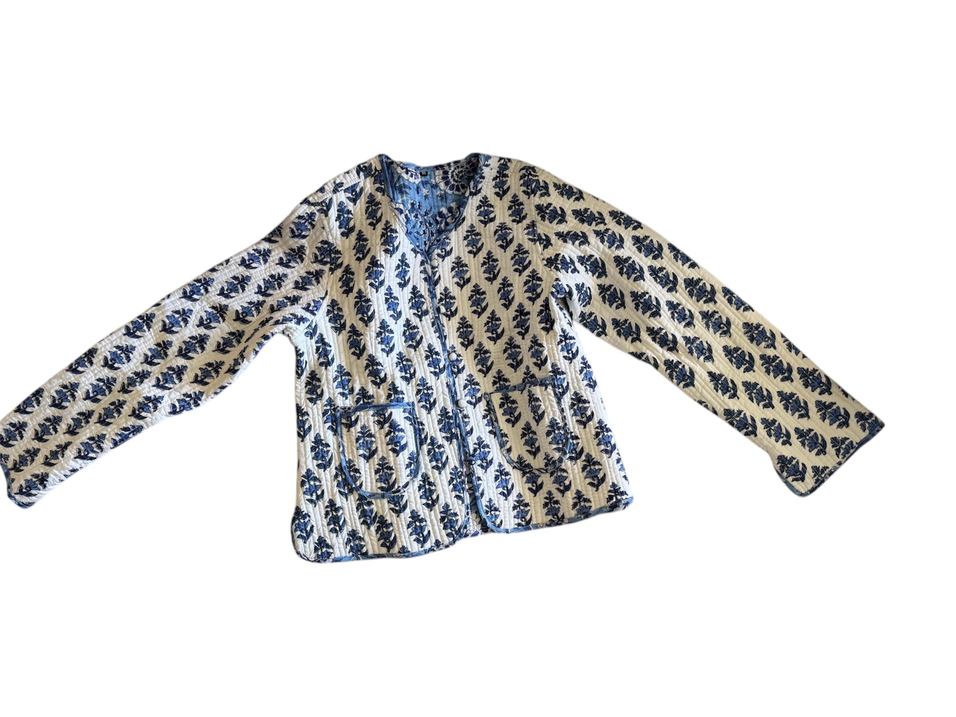 Chaqueta unitalla acolchonada, bolsillos delanteros, 100% algodón, estampado a mano, diseño original, doble vista