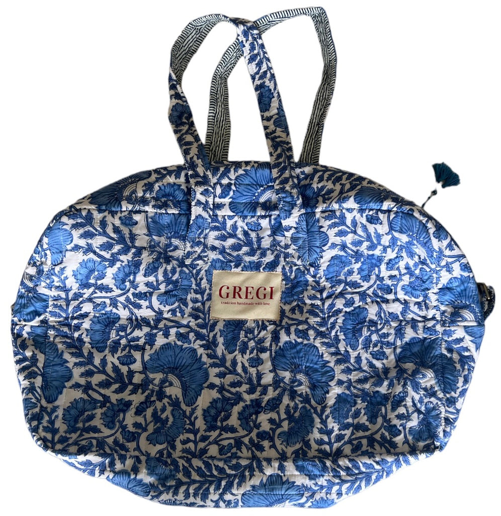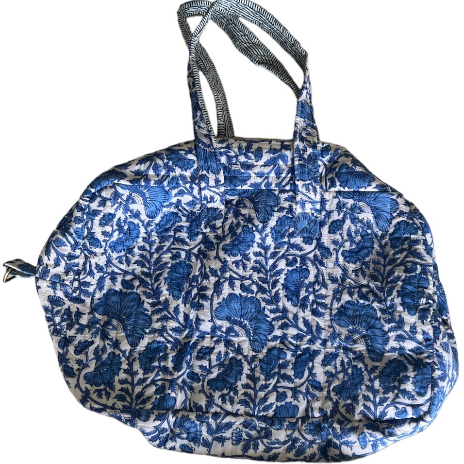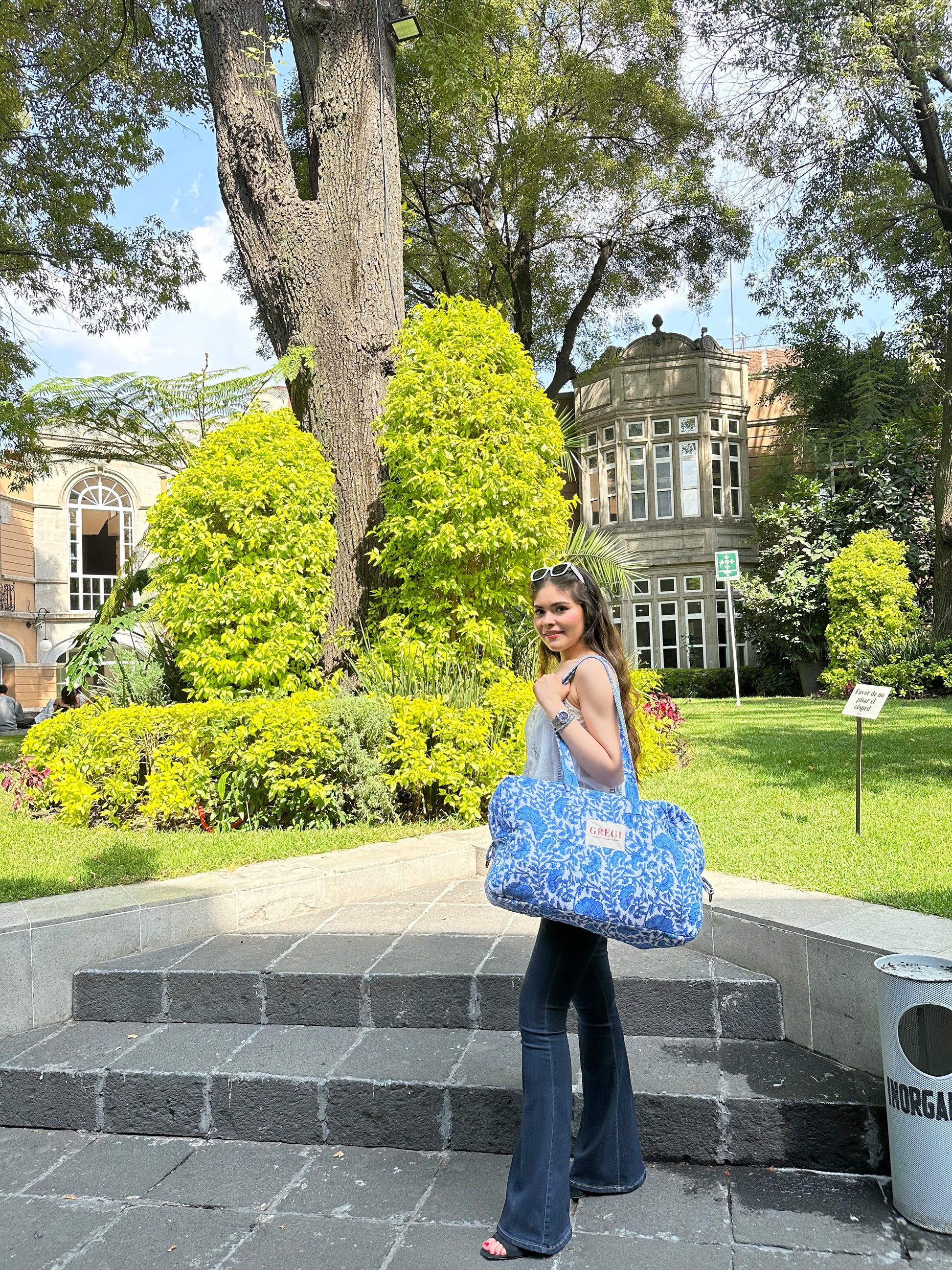 Maleta de viaje con asas, compartimientos interiores, 100% algodón, estampado a mano, ligera, resistente.