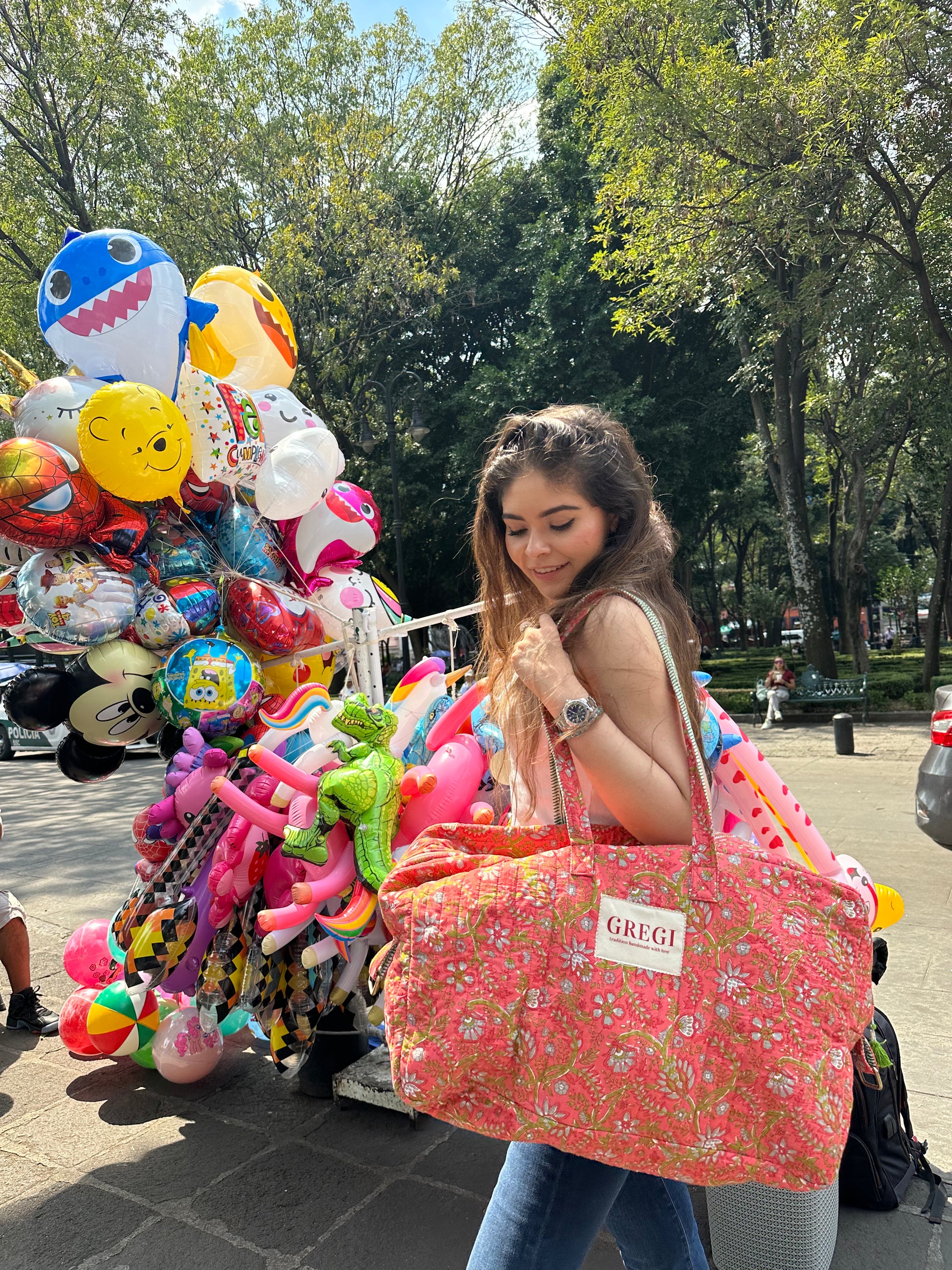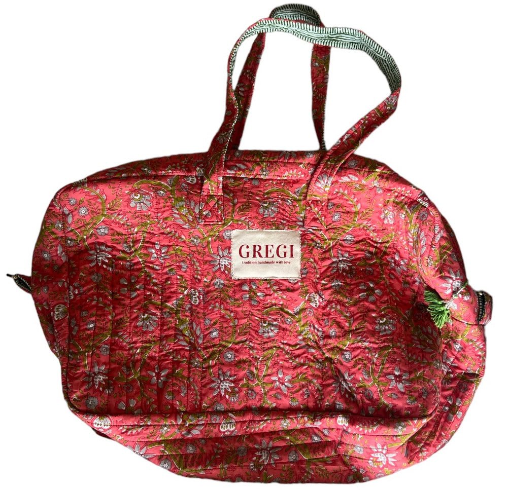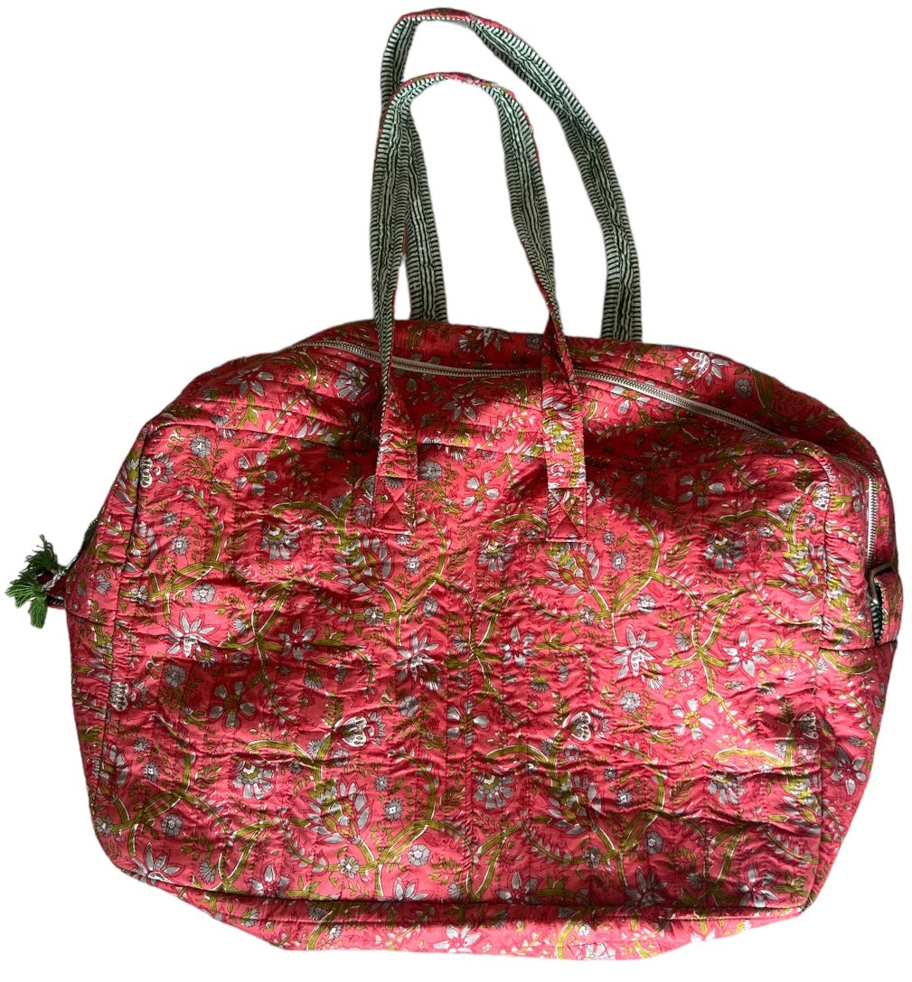 Maleta de viaje con asas, compartimientos interiores, 100% algodón, estampado a mano, ligera, resistente.