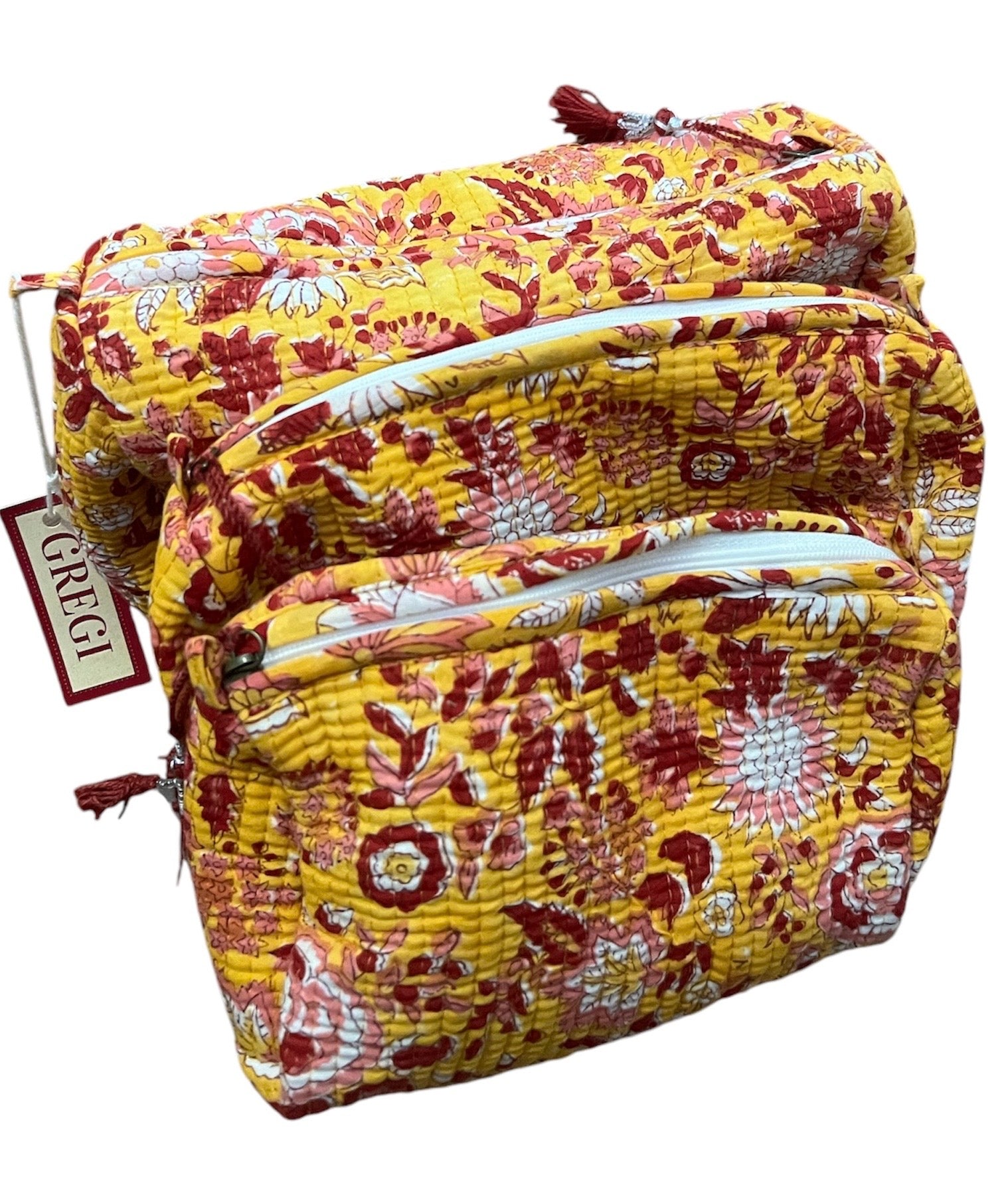Set de neceser 3 piezas, resistente al agua, 100% algodón, estampado a mano, con cierre externo.